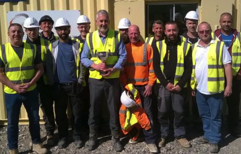 Well done to all the site team including: Kieron Jones with the award (centre), Kevin Grossman (front, far left), and Jed Weekes of the Letman Group Ltd (front, far right).
